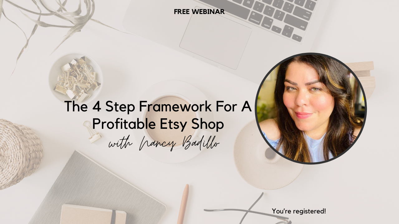 Welcome to this free Etsy training! I'm Nancy Badillo, and I have been selling on the Etsy platform for seven years, with over 15 years of experience in digital marketing. In this training, I will provide you with my exact, proven, and perfected plug-in system to help you finally start making money on Etsy.